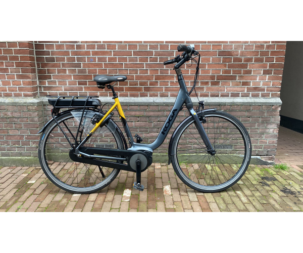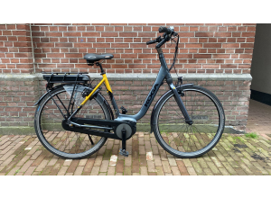 E-NOVA LADY 56CM Grey / Lemon Curry Matt, zeer nette tweedehands fiets met een active line plus motor van Bosch. Fiets heeft net een grote beurt gehad en is voorzien van een jaar bovag garantie, tevens heeft de fiets een nieuwe 400 wh accu die voorzien is van 2 jaar fabrieksgarantie.